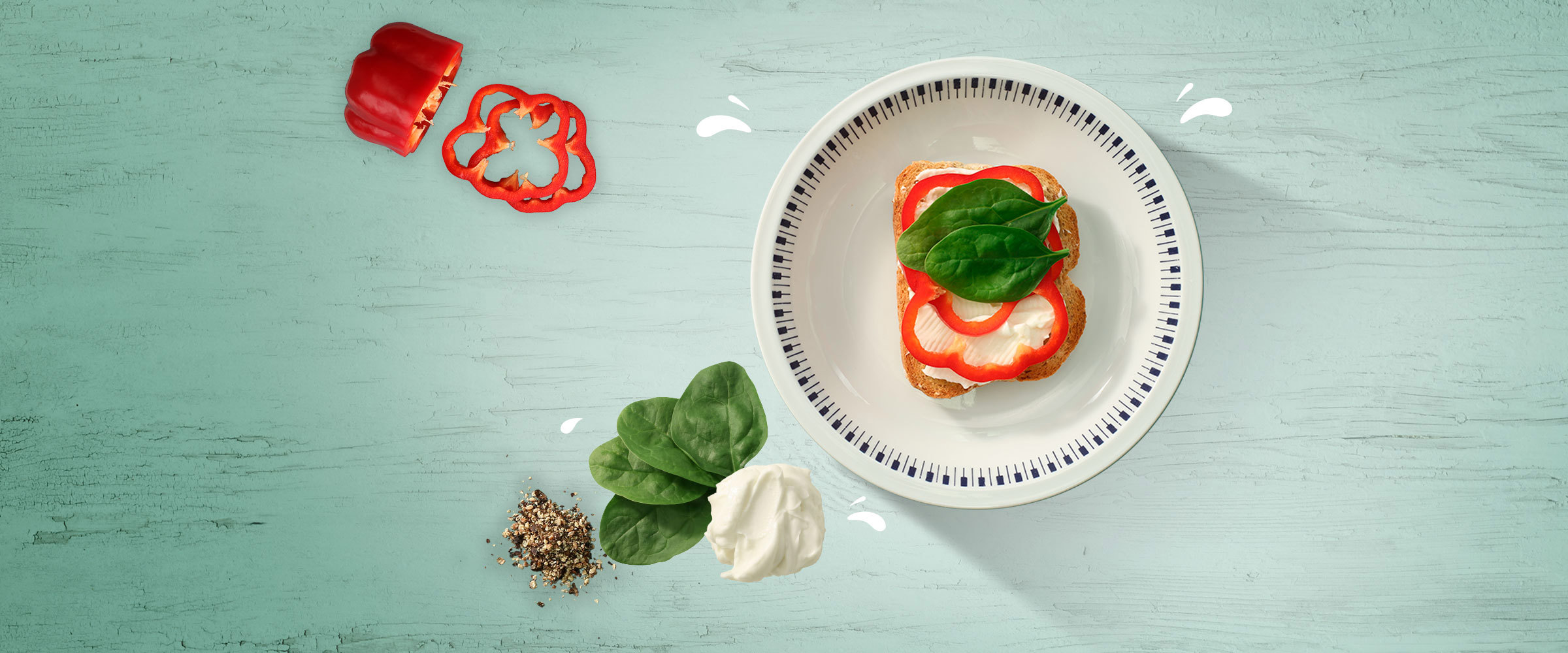Build the sandwich and toast it in a toaster. Or eat it fresh, with only the bread toasted. Enjoy the sandwich with a glass of milk.